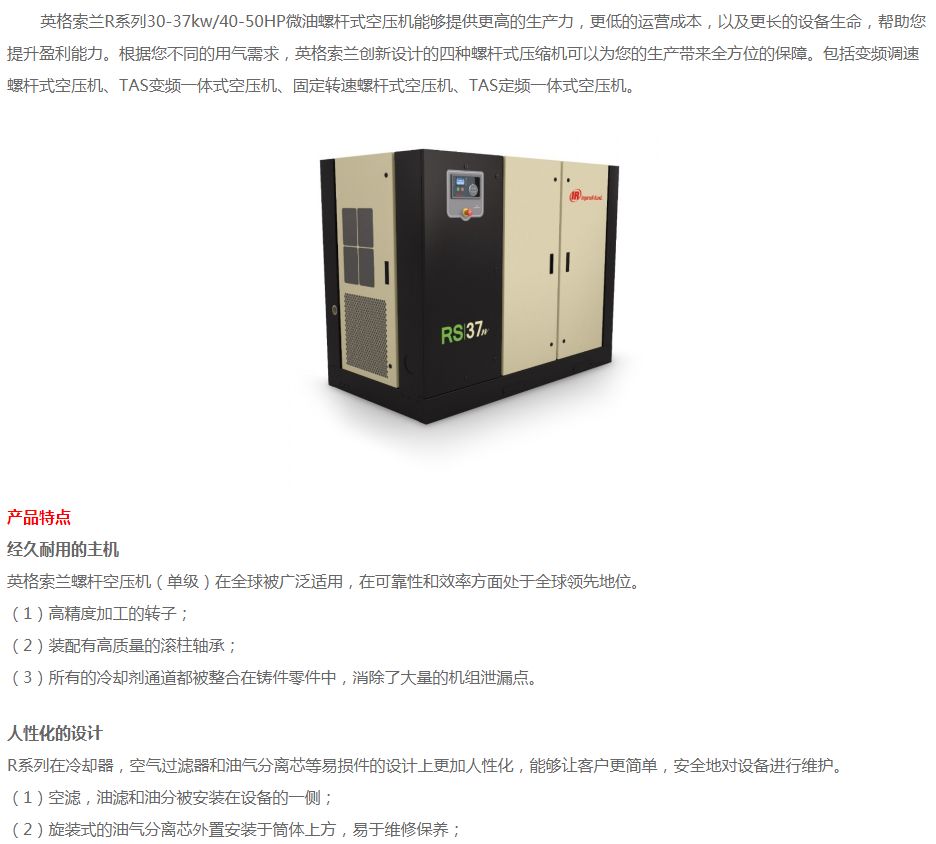 英格索蘭螺桿式空壓機R系列 30-37KW